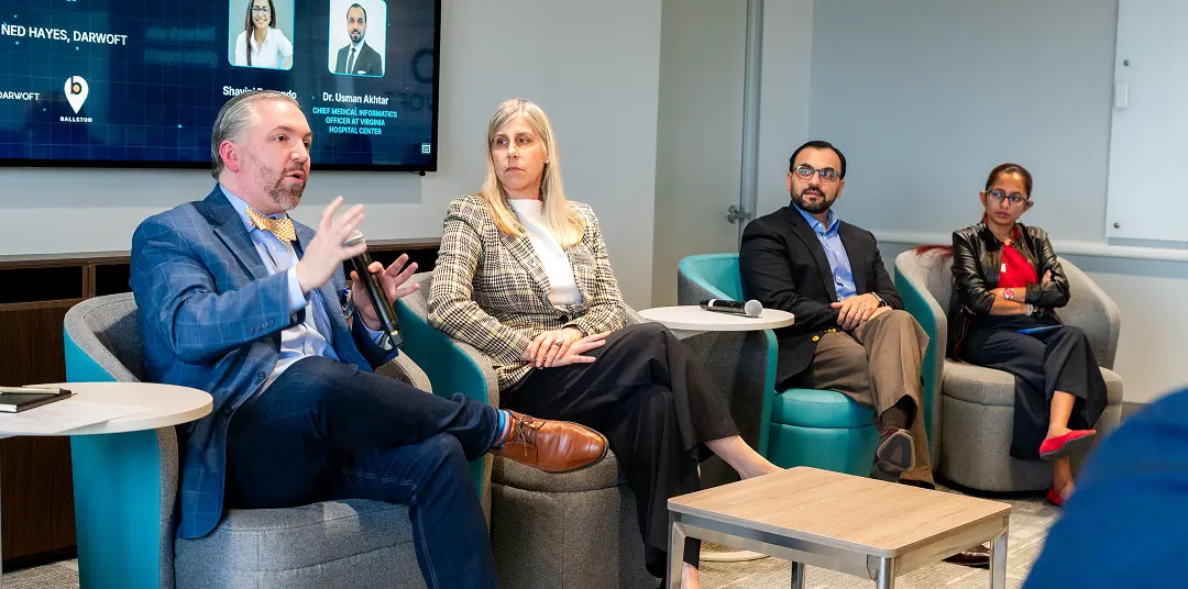 Hosted by Darwoft in collaboration with Ballston Business Improvement District and Arlington Economic Development, the event created a space to explore both the opportunities and responsibilities that come with integrating AI into one of the most complex industries in the world.